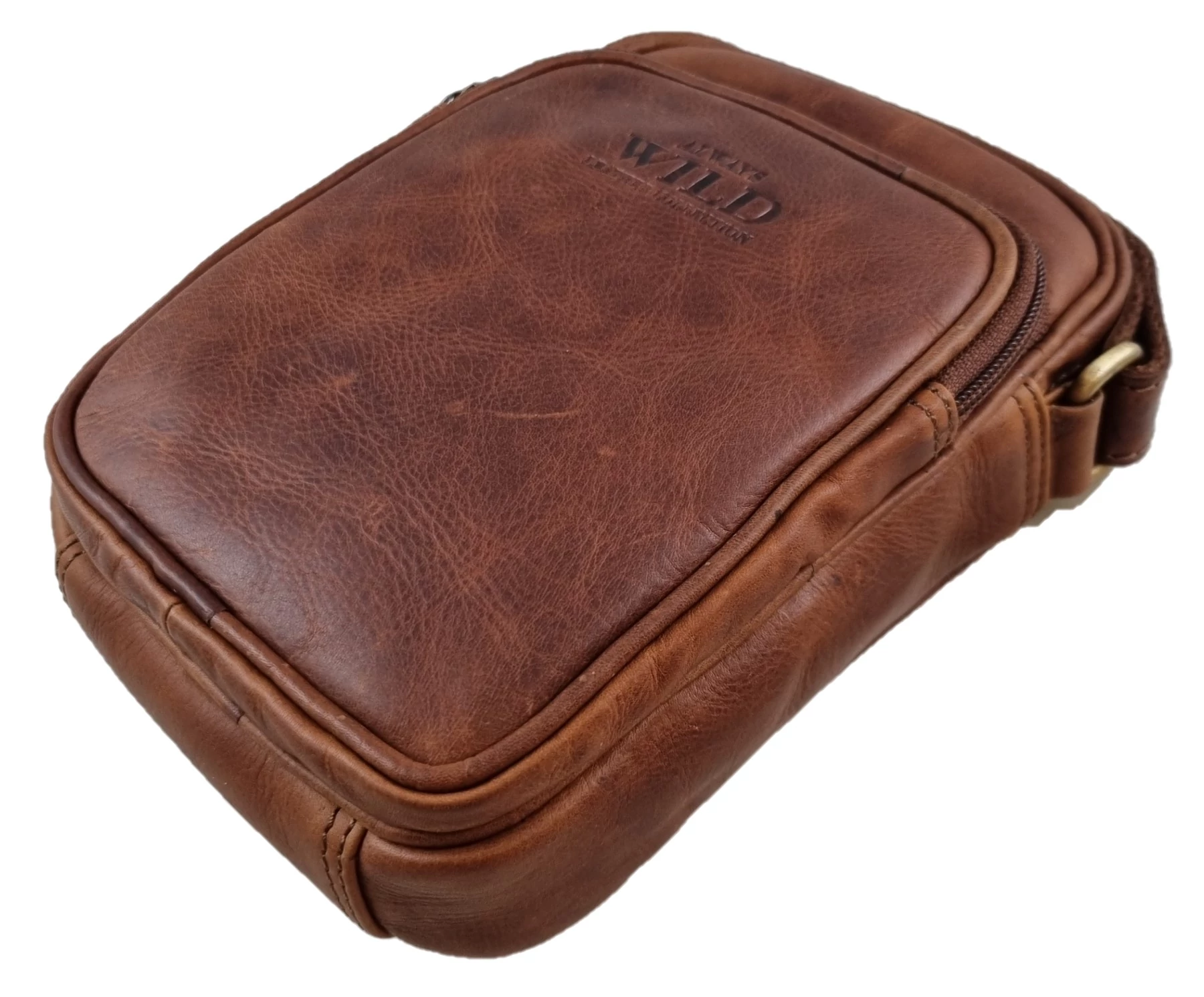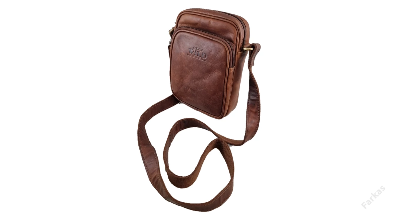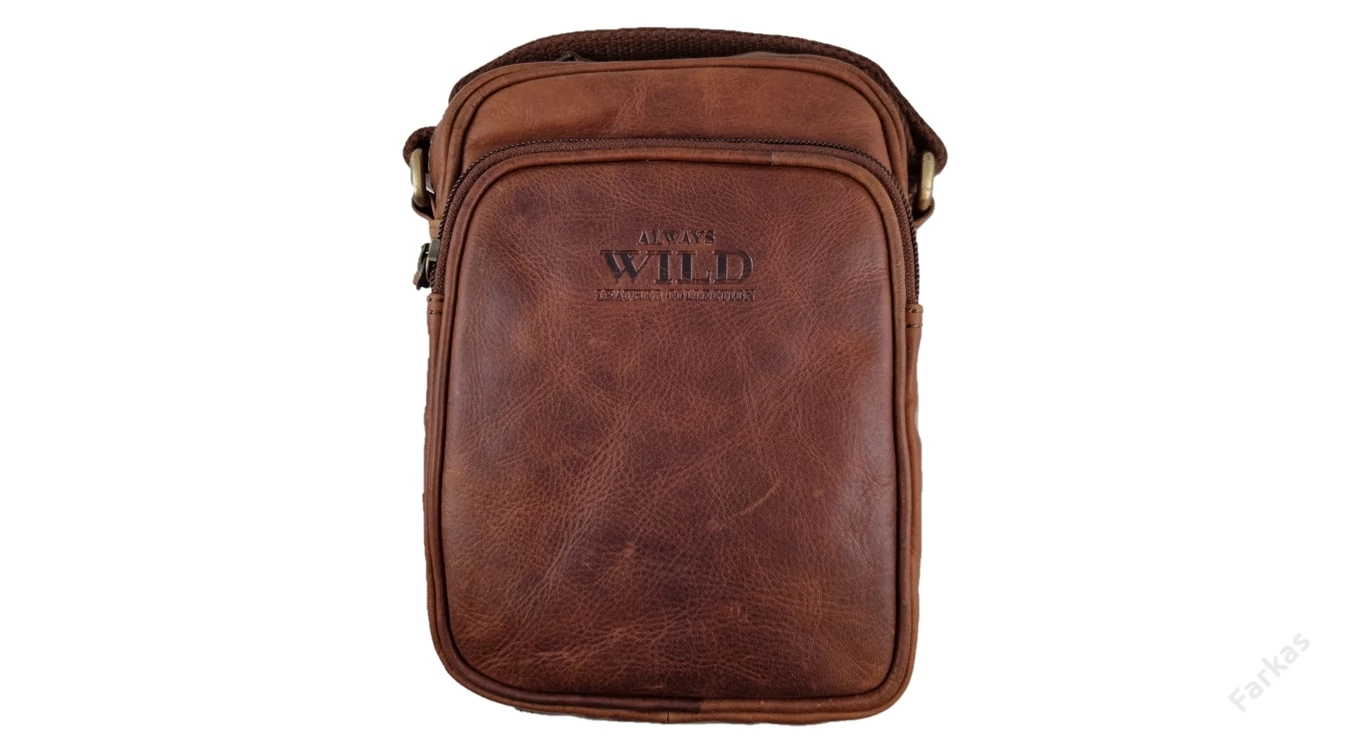 Kiváló minőségű férfi táska, mely zsíros marhabőrből ("pull up" bőrből) készült. "Always Wild" felirat díszíti. Egy rekesszel rendelkezik, amiben egy cipozáras zseb és egy nyitott zseb található. Az táska elejé és a hátulján található 1-1 cipzáras zseb.