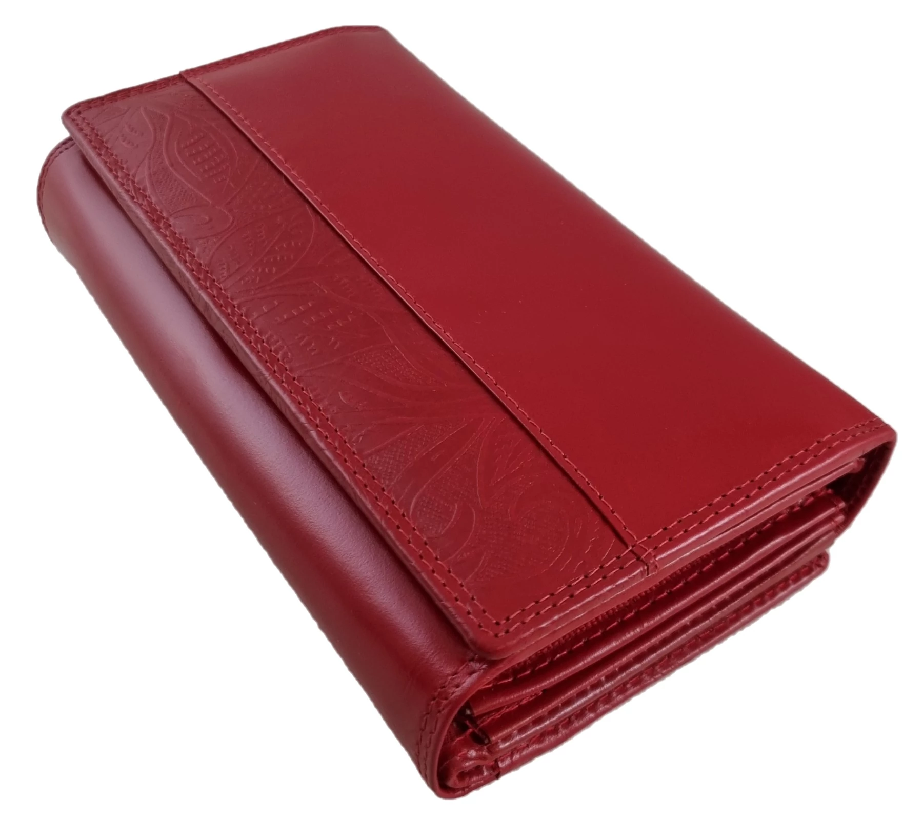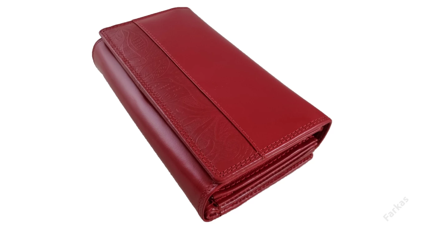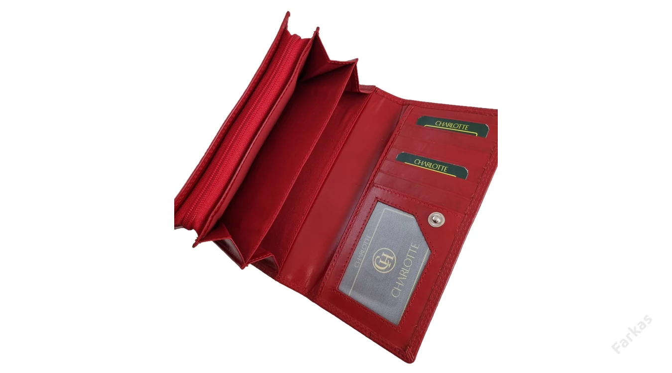 Nagy méretű női pénztárca, mely sok kártyatartó hellyel rendelkezik.. Saját termékünk, így szeretettel ajánljuk azoknak a Vásárlóinknak, akik szeretik a minőséget és az egyediséget. A pénztárcához igényes díszdoboz is jár. A fedele patenttal nyitható. Belsejének elrendezése klasszikus: egy 2 rekeszes papírpénztartóval, egy körcipzárral nyíló, 2 rekeszes aprópénztartóval, 2 igazolványtartó zsebbel és 7 db kártyatartó hellyel rendelkezik, ezek közül az egyik "ablakos". A pénztárca hátulja egy átkapcsoló fülecskével nyitható, itt további kártyatartó helyek vannak, összesen 17 kártyának és 2 (nagyobb) igazolványtartónak.