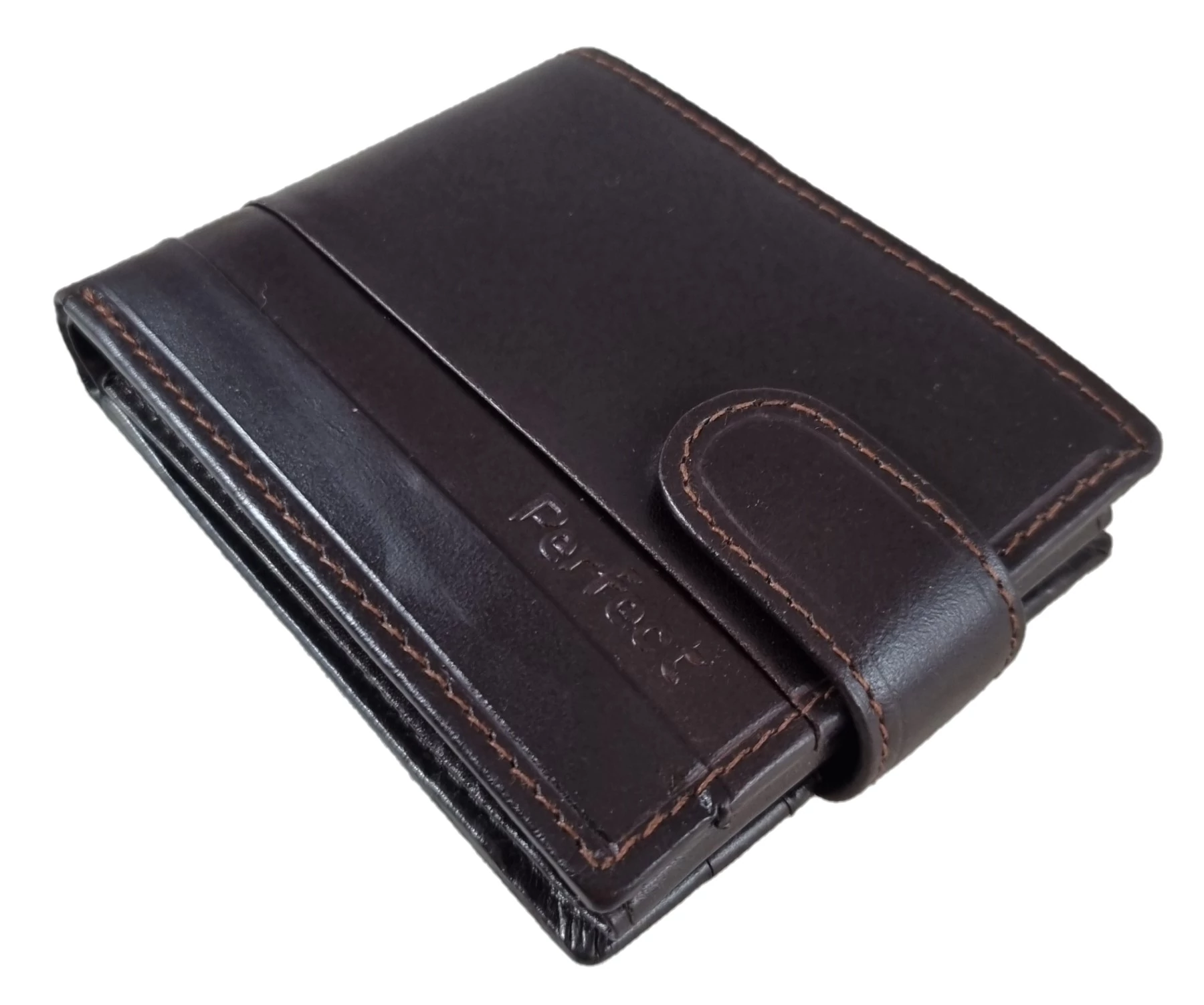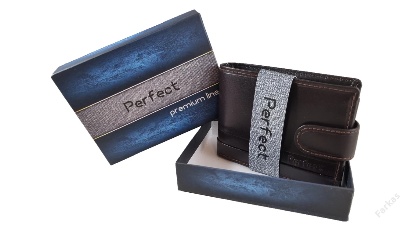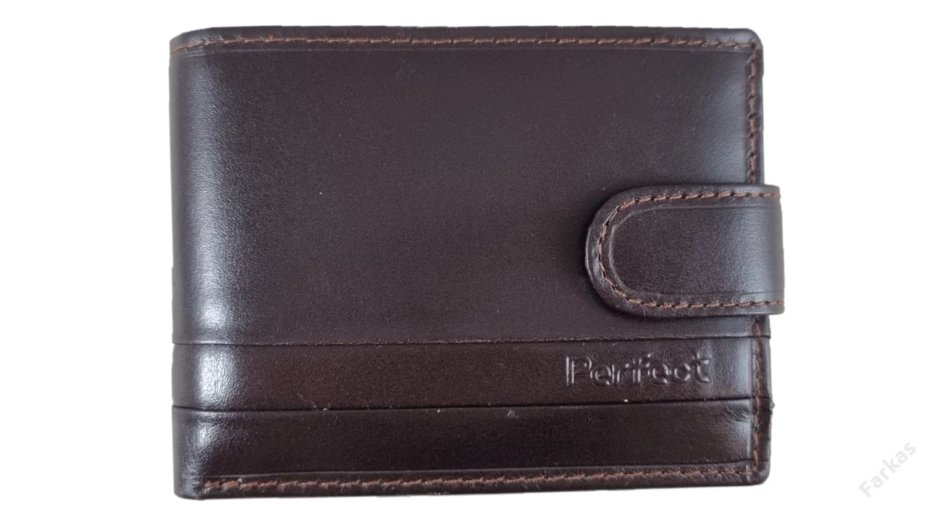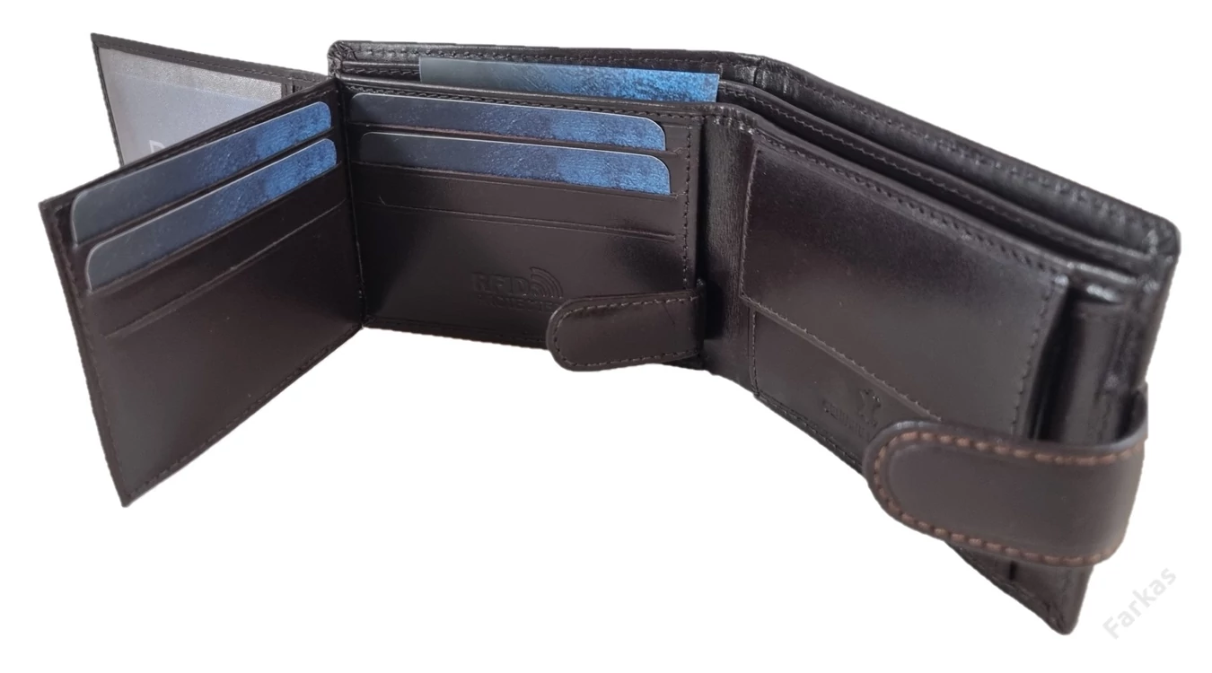 Fényes bőrből készült férfi pénztárca. Elegáns, komoly stílusú. Fedele átkapcsolóval nyílik. Belsejének elrendezése klasszikus. Papírpénztartója két rekeszből áll. Az aprópénztartó patenttal nyitható. A kártyatartó rész könyvszerűen lapozható és összesen 11 kártyának van benne hely. Díszdobozban szállítjuk, így ízléses ajándék lehet férfi ismerősének.